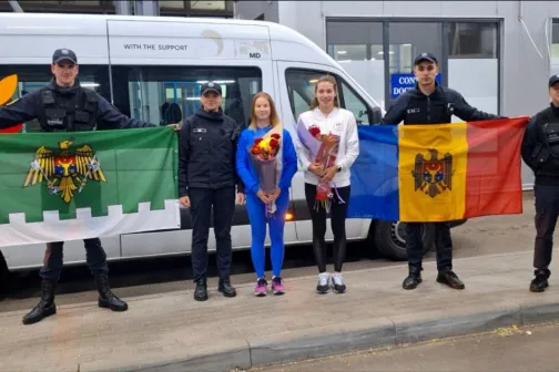 Imagine 13/05/2024 -09:57 News Sportivele Daniela Cociu și Maria Olărașu, întâmpinate cu flori la frontieră