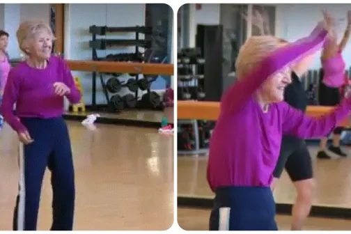 Imagine 16/09/2022 -15:08 News O bunicuță de 96 de ani nu se lasă de sport nici de ziua ei. Și-a sărbătorit aniversarea la sală