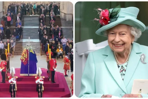Imagine 16/09/2022 -14:32 News O delegație a guvernului chinez nu a fost lăsată să intre la sicriul reginei Elisabeta, la Westminster Hall