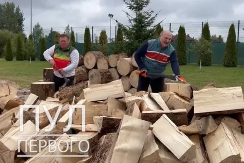 Imagine 14/09/2022 -20:09 News Lukașenko, cu toporul în mână la tăiat lemne pentru europeni ca să ,,nu înghețe la iarnă”