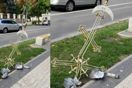 Imagine 14/09/2022 -17:19 News Incident în Capitală! Crucea de pe Biserica Sfânta Teodora de la Sihla a căzut la câțiva centimetri de o femeie