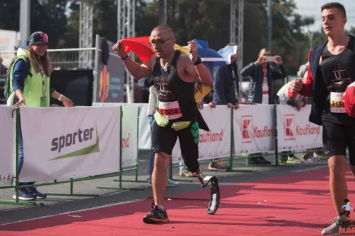 Imagine 02/10/2017 -09:54 News Impresionant! Un bărbat a alergat 42 de km cu un singur picior și a obținut medalia