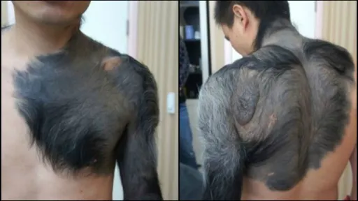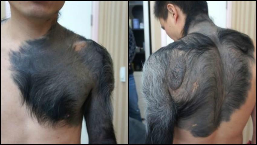 Bărbatul are pe corp alunițe gigantice din care crește păr, atât de des și de gros încât seamănă cu blana de animale. Zang s-a născut cu niște pete negre pe corp, însă familia lui era săracă și nu și-a permis să-i facă analize sau tratamente."Blana a fost un coșmar pentru mine de când m-am născut", sune Zang. Bărbatul a povestit că la început erau doar pete negre, dar de la vârsta de 8 ani a început să crească mult păr din ele, negru și foarte des. Povestea lui traumatizantă a impresionat atât de mult o doctoriță de la un spital de chirurgie plastică, încât femeia s-a oferit să se ocupe gratuit de problema lui Zhang.Tânărul a suportat prima procedură, din cele șase necesare pentru îndepărtarea părului și a alunițelor gigantice, informează dailymail.co.uk.sursa