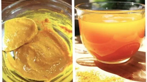 Ingrediente: 1 linguriță turmeric, 200 g de ceapă, 2 până la 3 cm de rădăcină de ghimbir, 200 g de miere, 0,5 litri de apă.