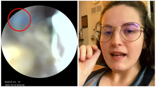 Văzând că sprayurile de nas nu au efect, aceasta a decis să vadă despre ce este vorba. A presupus că este un dop de mucozități, așa că a folosit un dispozitiv de controlat urechea și și-a analizat nara cu probleme. Când a folosit o sursă de lumină puternică, tânăra din Georgia a observat un obiect de culoare albastră.