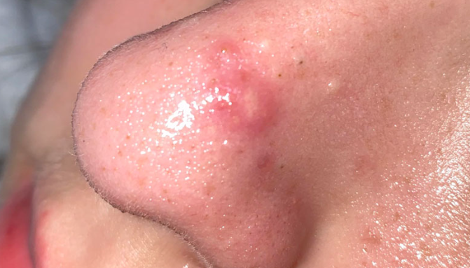 O femeie care a crezut că are un simplu coș pe nas a fost șocată când a fost diagnosticată cu cancer de piele.