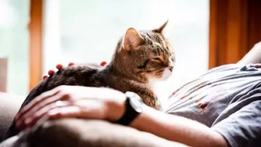 - Așezarea pe zonele dureroase: Există cazuri în care pisicile s-au așezat direct pe zonele corpului stăpânului unde acesta simțea durere, cum ar fi articulațiile inflamate sau stomacul deranjat.