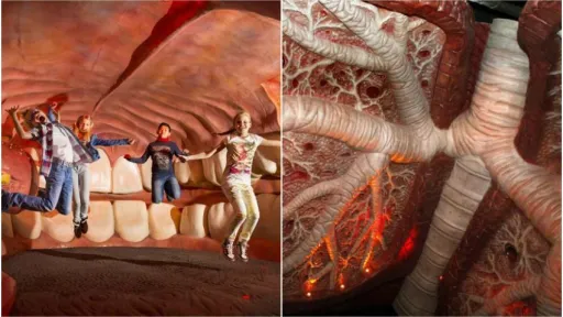 ,,Muzeul Corpului” este creat atât de realist încât vizitatorii rămân uluiți. Chiar de la ușă ai șansa să intri în corpul uman și poți merge prin toate părțile unui organism uriaș.Muzeul, situat în orașul Leiden, lângă capitala Olandei (aproximativ 40 de minute cu mașina de la Amsterdam și o oră cu autobuzul), este greu de ratat. Chiar de departe, poți vedea o figurină uriașă sub forma unei persoane așezate, ca și cum ar fi încorporată într-o clădire modernă înaltă. Și intrarea în muzeu este situată la genunchiul acestei sculpturi uriașe, după care trebuie să urci pe o scară specială.Spectacolul nu este pentru cei slabi de inimă. În interiorul muzeului, de fapt, un întreg oraș, format din diferite părți ale corpului, te poți plimba , dacă ai nervi puternici.Pornind de la femur și observând formarea de celule albe din sânge și celule roșii din sânge, călătorii trec treptat mai departe. În total, în timpul călătoriei, urci șapte etaje, adică părți ale unei persoane gigantice.Fiecare organ este reprezentat atât de realist încât chiar devine înfricoșător. Cu toate acestea, pentru studenții de la medicină sau elevii pasionați de știință, biologie și fiziologie umană, excursia este o adevărată revelație. Vizitatorul se simte ca un mic gândac, călătorind de-a lungul "coridoarelor" unui om gigant artificial și urmărind cum circulă sângele, cum funcționează tractul digestiv și bate inima gigantică. Aparatul auditiv, mușchii, corzile vocale, oasele, dinții - toate acestea pot fi studiate în detaliu.Lucrarea fiecărui organ este difuzată pe monitoare și este însoțită de sunete reale. În unele cazuri, activitatea organelor este prezentată nu numai vizual, ci și olfactiv. Cu ajutorul ochelarilor speciali, această excursie este o călătorie în format 5D.În Muzeul Corpului se poate vedea chiar cum se naște un om și cum se dezvoltă fătul în uter, deoarece omul de oțel în interiorul căruia turiștii călătoresc, potrivit creatorilor, este o femeie.Apropo, în timp ce călătoresc în interiorul corpului, vizitatorii pot vedea clar ce obiceiuri proaste au un impact negativ asupra organelor și sistemelor și înțeleg că, de fapt, acest mecanism aparent puternic, organismul uman, este destul de fragil. Punctul final al călătoriei, printr-un imens organism artificial, este creierul uman cu neuroni foarte reali. Creierul uriaș, ca și alte "exponate" ale muzeului, poate fi atins.Ce altceva trebuie să știi despre muzeu?Dezvoltarea proiectului muzeului a durat 12 ani, după care construcția însăși a durat aproape doi ani. Iar realizarea acestei idei incredibile a costat mai mult de 30 de milioane de dolari. Înălțimea clădirii este de aproximativ 35 de metri. Biletele pot fi comandate prin Internet sau cumpărate la casetele muzeului, dar organizatorii îi sfătuiesc pe vizitatori să le achiziționeze în avans, deoarece sunt prea mulți oameni care doresc să intre în lumea fascinantă numită "om".Copiii sub 6 ani nu sunt lăsați să intre în muzeu, ceea ce este logic. Poți afla detalii pe pagina muzeului.