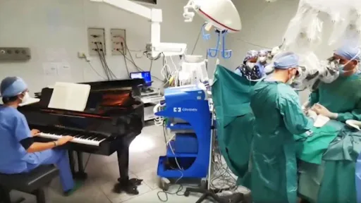 Un băiat în vârstă de 10 ani din Italia a fost operat de un cancer la măduva spinării, intervenţia chirurgicală fiind realizată în timp ce un muzician cânta la un pian adus în sala de operaţii.