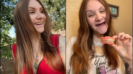 Whitney Johnson, acum în vârstă de 25 de ani, din Oklahoma, SUA, spune că vrea să înlăture stigmatul conform căruia protezele dentare sunt pentru persoanele în vârstă, deoarece şi ea a fost nevoită să le poarte de mai bine de doi ani.