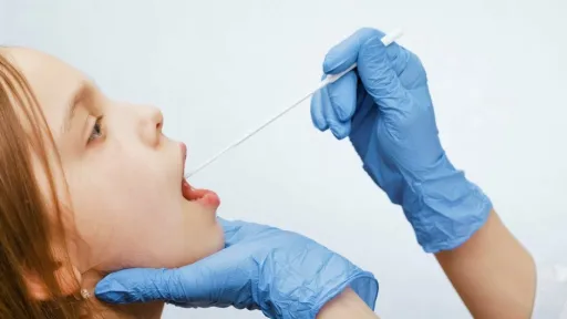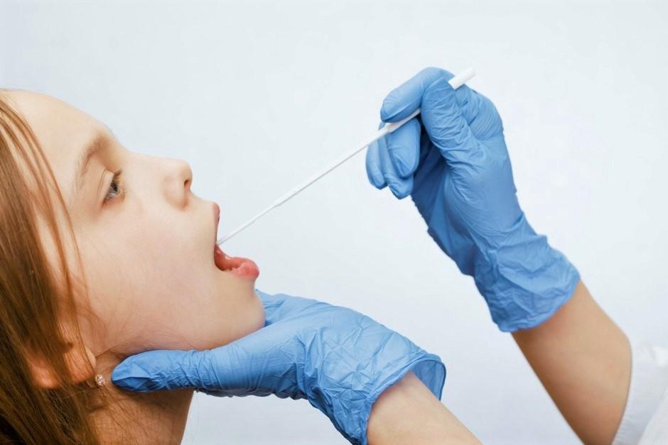 Proba prelevată cu un tampon din gura pacientului este amestecată cu o soluție și adăugată apoi la un cip de detectare a agentului patogen.