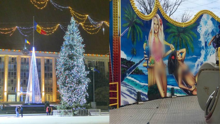 În Piața Marii Adunări Naționale a fost montat recent un spațiu de distracții pentru copii. Acesta chiar în preajma faimosului Pom de Crăciun.