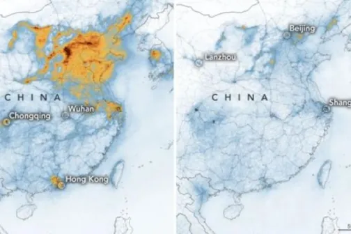 Imagine 02/03/2020 -21:15 Sănătate Efectele neașteptate ale coronavirusului: imaginile NASA arată reducerea poluării în China