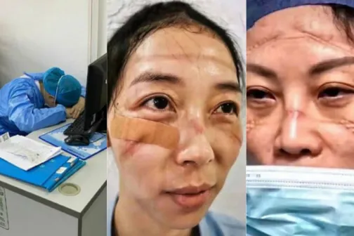Imagine 06/02/2020 -20:35 Sănătate Sacrificiul medicilor și asistentelor din China: răni pe față din cauza măștilor, nopți nedormite