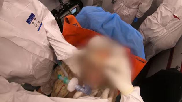 Un moment greu de privit a fost cel în care pacientei i s-a pus masca CPAP pentru a creşte saturaţia de oxigen, care era undeva la circa 70%. În primele momente, femeii i-a fost greu să respire cu ajutorul măştii, a intrat în panică şi s-a plâns: „NU mai am aer”. Medicii i-au explicat că trebuie să încerce să respire cu ajutorul măştii şi lucrurile s-au îmbunătăţit, saturaţia de oxigen a ajuns, rapid, la peste 90%.