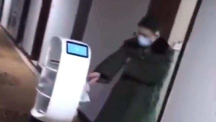 Măsură fără precedent în China. Un robot specializat aduce hrană și alte lucruri necesare pacienților infectați cu coronavirus.