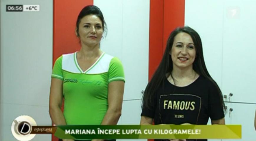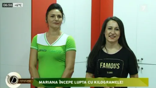 Încă o reporteriţă de la Jurnal TV este pregătită să asculte sfaturile expertului în slăbit sănătos. Mariana Chirică, mamă a doi copii, recunoaşte că sarcinile i-au cam pus în dificultate silueta. Pentru un impuls de sănătate şi frumuseţe, tânăra mămică vrea să ajungă la greutatea de 62 de kg. Mariana consideră că ar fi bine să-şi reducă din circumferinţa taliei, să scape de burtica de după cele două naşteri, dar şi să-şi tonifieze muşchii în zona abdomenului.