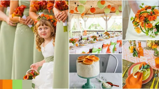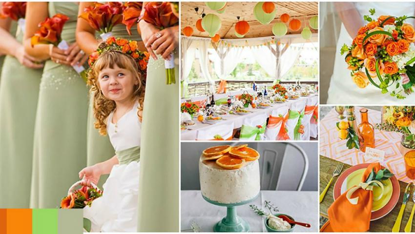 Dacă ai stabilit tematica nunții, va fi mult mai ușor să alegi și culorile, în funcție de ceea ce transmit acestea. Gândește-te cum dorești să fie atmosfera la nuntă: una dinamică, romantică, relaxantă? Sau poate vrei să ții cont de ultimele trenduri.1. Portocaliu și verde!