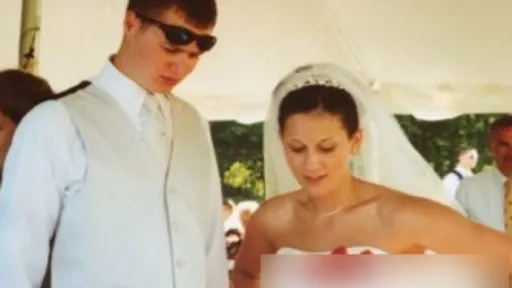 Cei care au văzut poza de la tortul mirilor au rămas surprinşi. Au crezut că mireasa a îmbrăcat o rochie de prost-gust, cu inserţii de căpşuni. Însă, totul n-a fost decât o ilizie optică. Deoarece mireasa s-a aşezat în aşa mod încât tortul putea fi confundat cu rochia ei.