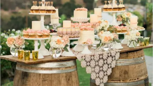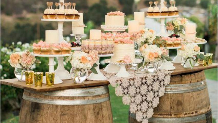 [unica_same_post_by_category]Pentru o nuntă rustică, candy-bar-ul tradițional este înlocuit de un colț de rai, plin cu bunatăți de casă și dulcețuri. Bucăți de lemn în loc de farfurii, lăzi în loc de rafturi, butoaie în loc de mese sau o căruță clasică - acestea alcătuiesc un decor de vis. Foto: pinterest.com