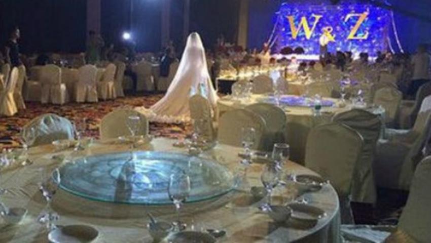 Cuplul care și-a orgnaizat nunta a invitat peste 300 de persoane la evenimentul lor. Dar din cauză că în acele zile, într-o zonă din China, a avut loc un uragan extrem de mare, mulți oameni au decis să nu-și părăsească locuințele, la fel au făcut și invitații la respectiva nuntă.