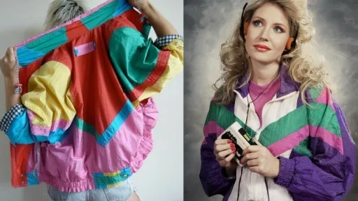 Haine precum blugi brodați, topuri colorate în neon, tricouri cu numele unor trupe, scurte de blugi, pulovere, colanți în culori strălucitoare erau la mare căutare. Cine își mai amintește?