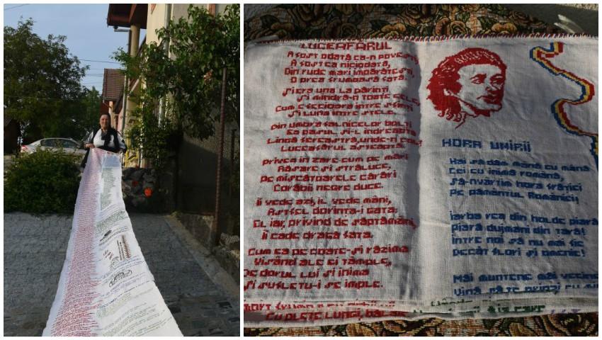 O femeie în vârstă de 71 de ani din localitatea Cugir, România, este demnă de Cartea Recordurilor. Din dragoste pentru creația lui Eminescu, aceasta a cusut cu acul şi aţa, timp de trei ani, versurile poeziei „Luceafărul” pe o pânză din cânepă de şapte metri lungime, o adevărată capodoperă pe care vrea s-o lase moștenire nepoților săi.