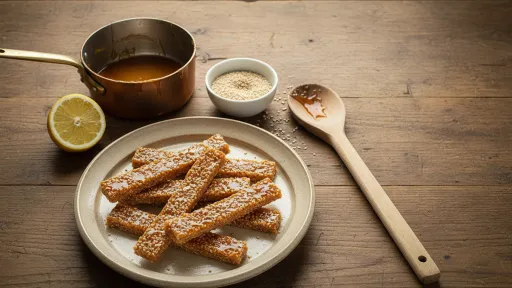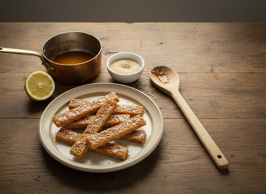 Rezultatul este un desert crocant, hrănitor și sățios. Susanul aduce aport de grăsimi bune, calciu și proteine vegetale, iar textura caramelului oferă satisfacția unui dulce intens, dar consumat în porții mici – în spiritul echilibrului monahal.