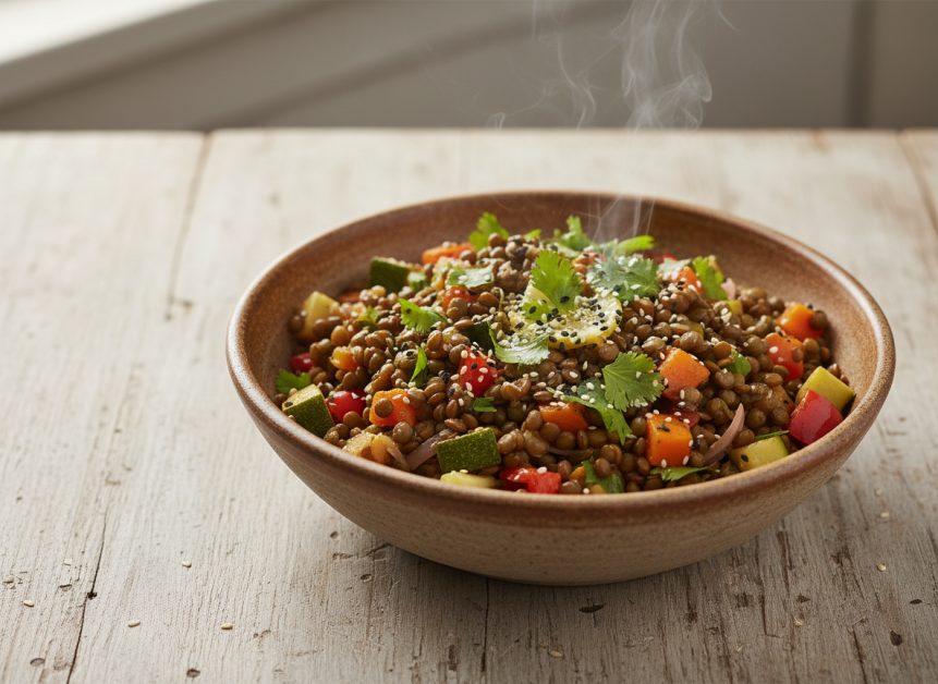 Postul nu trebuie să însemne mese plictisitoare sau lipsă de energie. Această salată caldă de linte cu legume este rapidă, nutritivă și suficient de sățioasă pentru prânz sau cină. Proteinele vegetale, fibrele și aromele intense fac din ea o alegere ideală pentru zilele de post.