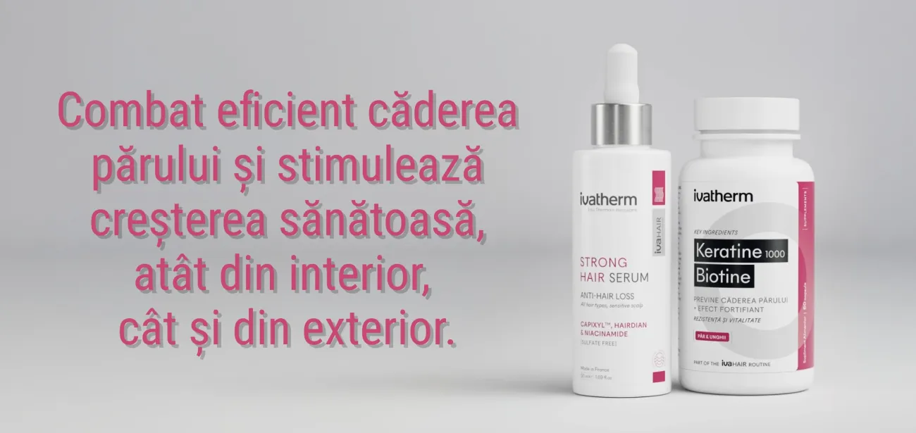 Căderea părului afectează tot mai multe persoane, indiferent de vârstă sau gen, fiind influențată de factori precum stresul, dezechilibrele hormonale sau nutriționale. După 20 de ani de inovație în dermatocosmetice, Ivatherm lansează ivaHair – Science-Based Haircare, o gamă completă dedicată îngrijirii părului, creată împreună cu dermatologi. Noua linie include două produse esențiale: ivaHair Strong Hair Serum și suplimentul alimentar Keratine 1000 Biotine, concepute pentru a combate eficient căderea părului și a stimula creșterea sănătoasă, atât din interior, cât și din exterior.