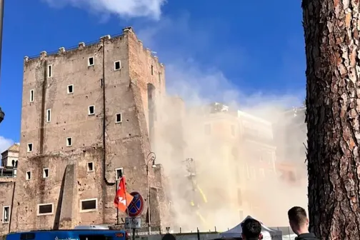 Imagine 03/11/2025 -17:13 Știri externe Prăbușirea parțială a turnului medieval Torre dei Conti din Roma: Un muncitor român, prins sub dărâmături