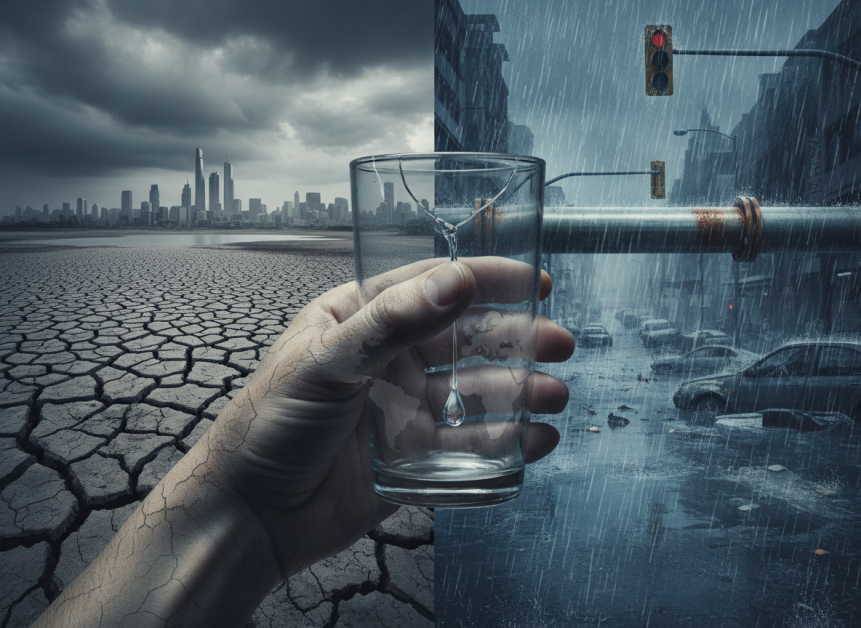 Schimbările climatice agravează criza prin topirea ghețarilor (care funcționează ca „rezervoare” naturale) și prin alternanța tot mai frecventă între perioade extrem de uscate și episoade de precipitații intense.