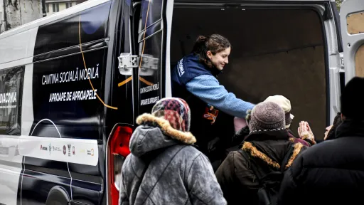 Într-o dimineață răcoroasă de toamnă, pe o stradă din Chișinău, peste 140 de vârstnici așteaptă răbdători în fața microbuzului Cantinei Sociale Mobile „Aproape de aproapele”. Rândul e lung și viu: pași grăbiți, glasuri domoale, zâmbete ascunse sub basmale ori pălării vechi. Pentru mulți, această masă caldă e nu doar hrană, ci și alinare, prilej de întâlnire, de poveste și de speranță.