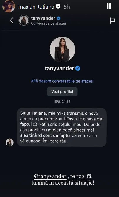 Tatiana Maxian a reacționat prompt, negând vehement acuzațiile, însă zvonurile au continuat să circule. Pentru a pune capăt speculațiilor, Maxian a cerut public clarificări din partea lui Tany Vander.
