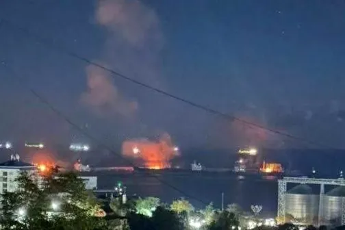 Imagine 02/11/2025 -09:25 Știri de-acasă Atacuri cu drone ucrainene asupra unui terminal petrolier în portul Tuapse, Marea Neagră: Incendii și avarii la infrastructura Rosneft