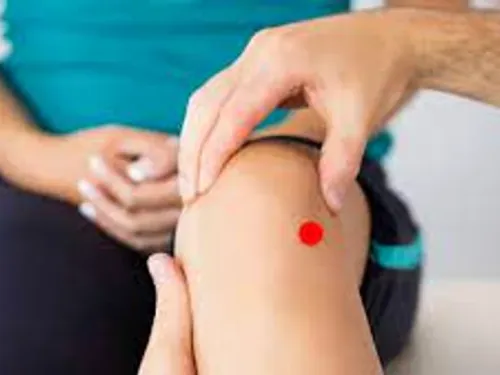 - Pentru a-l identifica, pune palma pe genunchi, iar la capătul degetului mic, pe partea laterală a tibiei, vei găsi acest punct.