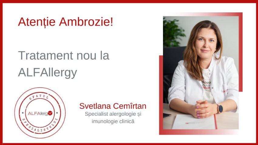 Eşti alergic la ambrozie? Simţi că această diagnoză îţi afectează calitatea vieţii? Eşti în căutarea unui colac de salvare? ALFAllergy, reprezentată de cei mai buni specialişti în domeniul alergologiei şi imunologiei, este gata să-ţi vină în ajutor. Svetlana Cemîrtan, specialist în alergologie - imunologie clinică la ALFAllergy susţine că, deşi vorbim despre unul dintre cele mai agresive polenuri, pentru alergia la ambrozie există tratament, nu doar medicamente care reduc simptomele.