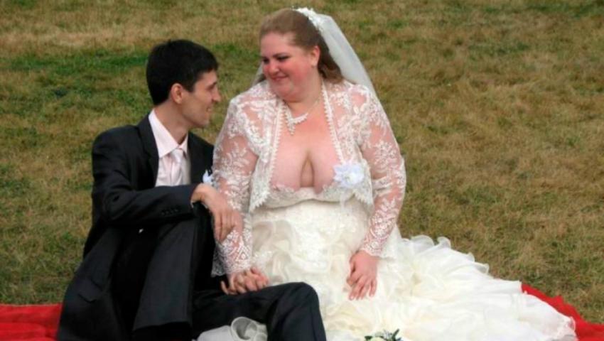 Pentru câţiva bărbaţi, însă, nunta a fost stricată chiar de parteneră. Aşa cum este obiceiul, mirele nu are voie să vadă rochia miresei înainte de nuntă. Bărbaţii din aceste poze au fost pur şi simplu şocaţi când au văzut ce vestimentaţie grotească au ales "jumătatea" lor.